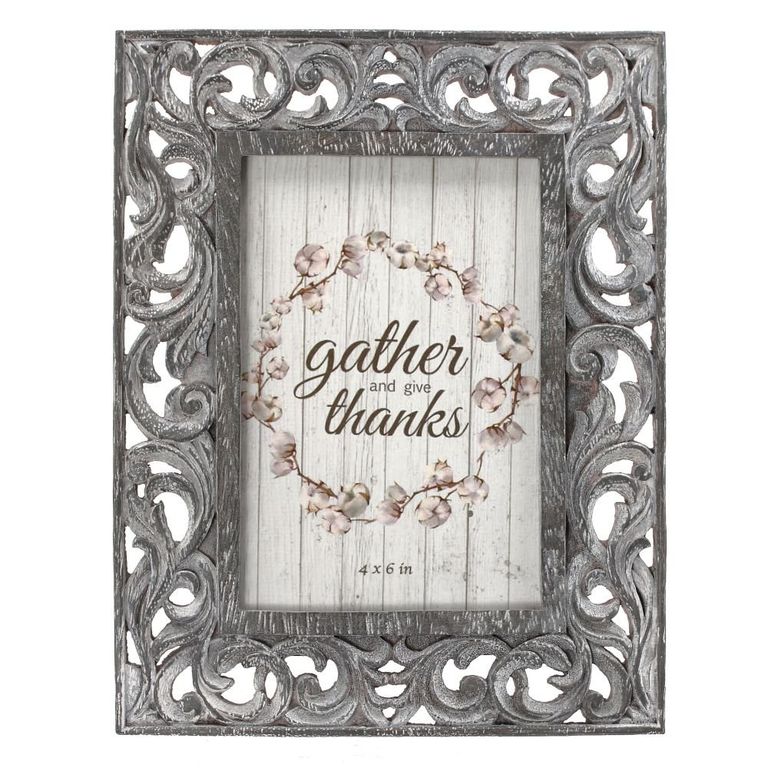Фоторамка выполнена из полистоуна, рама в виде барочного орнамента состаренного серебра.