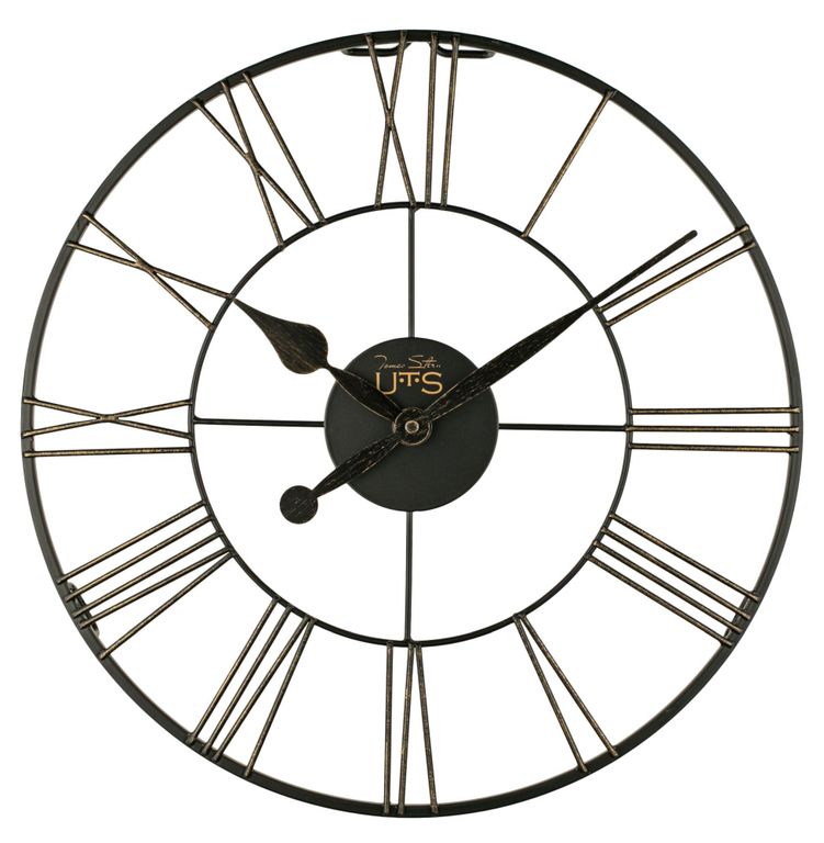 Кварцевые настенные часы в кованом металлическом корпусе черного цвета с золотистой патиной.