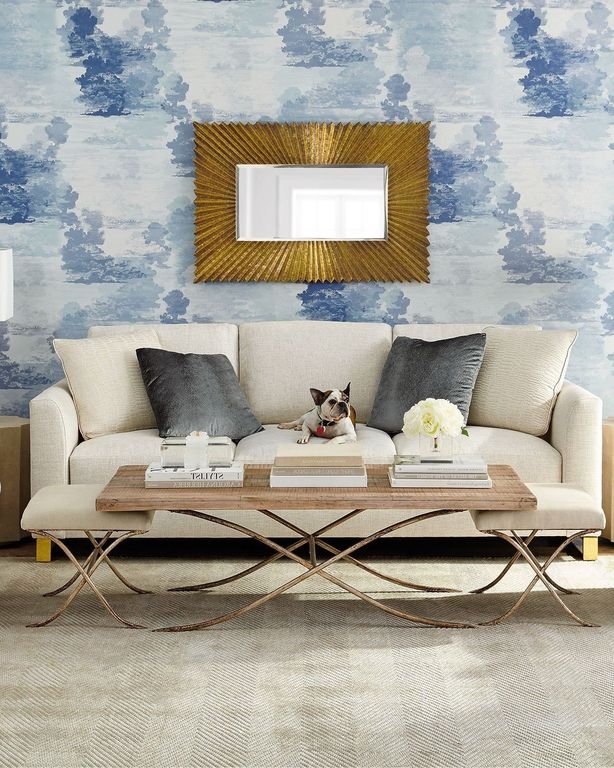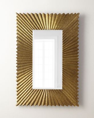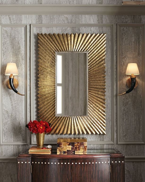 Золотое настенное зеркало в прямоугольной раме, выглядит как равномерный узор и имеет изящную форму с гармоничным латунным оттенком.