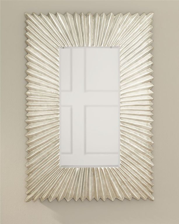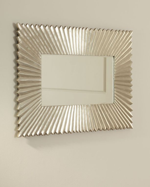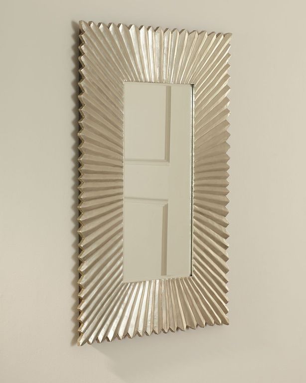 Серебряное настенное зеркало в прямоугольной рифленой раме, выглядит как равномерный узор и имеет изящную форму с гармоничным серебряным оттенком, с эффектом старения.
