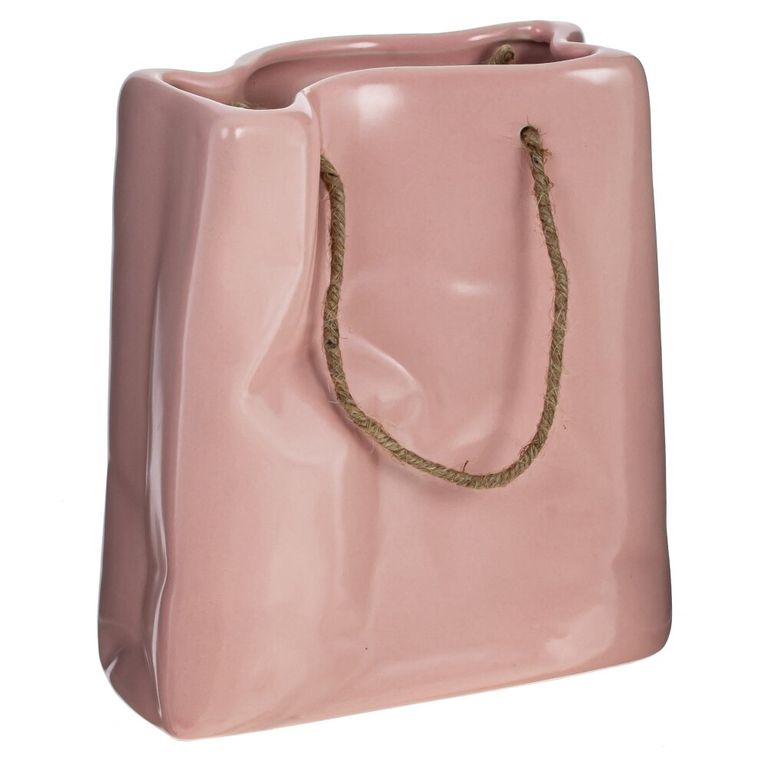 Фарфоровая рельефная ваза в виде замятого пакета с ручками из бичевки настолько красива, что сможет самостоятельно украсить интерьер и без цветов. Разместите эту модель у себя в доме - и она станет дивным элементом декора.