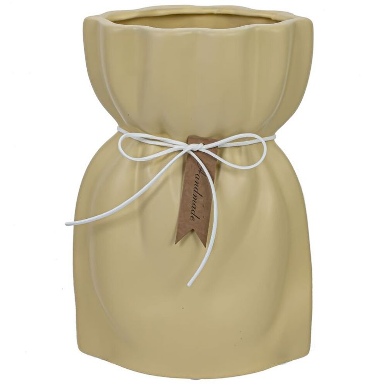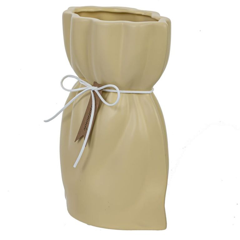 Фарфоровая ваза имеет интересную форму, благодаря которой она выглядит неповторимо и оригинально. Ее цвет придает ей особую нежность и теплоту, сделав ее идеальным дополнением для любого интерьера. Дизайн вазы дополняется декоративным шнурком. Размер горлышка вазы составляет 9*5 см, что позволяет разместить в ней самые яркие и элегантные цветы. Она прекрасно подходит для свежих букетов, сухих композиций или просто как самостоятельный элемент декора.