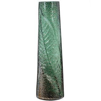 Стеклянная ваза с мягким рельефом листьев отлично подойдет к современным и просторным интерьерам гостиной, спальни или прихожей. Емкость практична для пышных букетов, сухоцветов, полевых цветов, декоративных веточек.