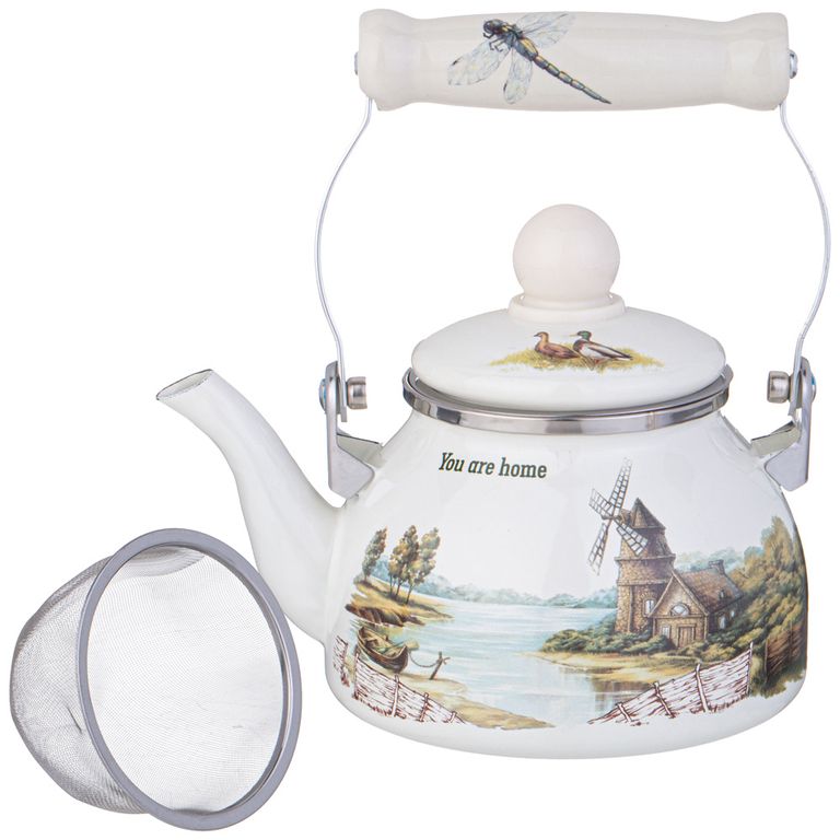 ЧАЙНИК ЭМАЛИРОВАННЫЙ СО СЪЕМНЫМ ФИЛЬТРОМ ИЗ НЖС СЕРИЯ "ДЕРЕВНЯ", 0,85 Л