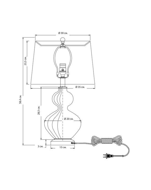 | Габариты (Ш*Г*В),см | 58 см. х Ø 35 см./ абажур 23,5 см. х Ø 35 см. |