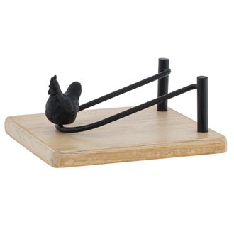 Он имеет деревянное основание, которое придает ему натуральный и теплый вид, а металлический держатель с декоративной фигуркой в виде птицы делает его еще более привлекательным.