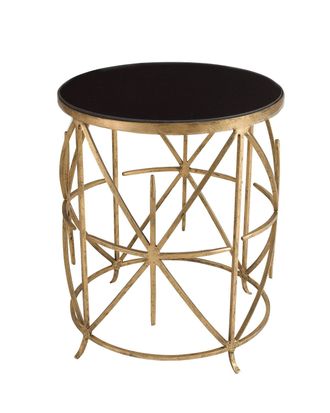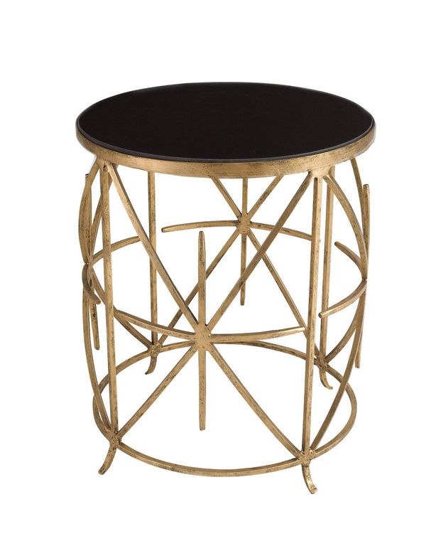 Круглый приставной столик “Ника” с металлическим золотым основанием и чёрной столешницей.