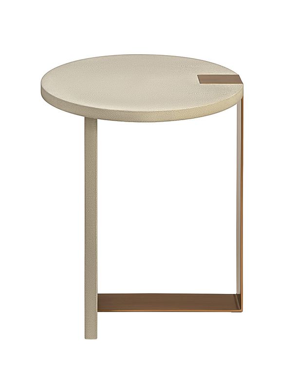 Бежевый приставной столик “Дидар” – это идеальное сочетание стиля ар-деко, совмещенная с практичностью раннего модернизма. Этот столик внесет изысканность и роскошь в любое помещение, будь то гостиная, спальня или кабинет. Особенностью столика “Дидар” является его отделка из шагреневой кожи, которая в точности воспроизводит текстуру натуральной шкуры ската. Кроме того, металлическая ножка выполненная в цветовой гамме – латунь, придает столику дополнительный стиль и дополняет общий дизайн. Размеры столика “Дидар” идеально подходят для использования как прикроватной тумбочки в спальне, приставного столика в гостиной или даже как функционального элемента в кабинете. Его компактные размеры делают его универсальным и практичным решением для различных помещений. Он подчеркнет ваш индивидуальный вкус и стиль, создав уютную и изысканную обстановку в вашем доме.