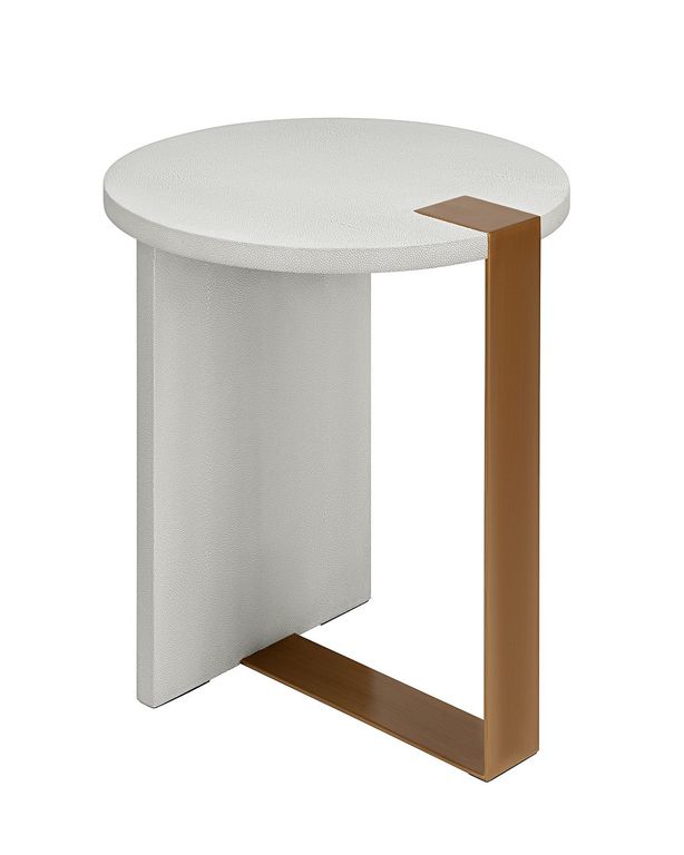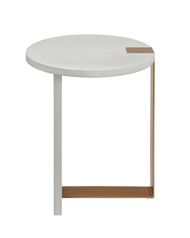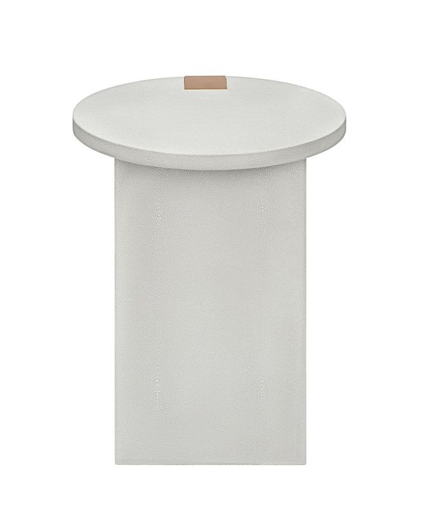 Белый приставной столик “Дидар” – это идеальное сочетание стиля ар-деко, совмещенная с практичностью раннего модернизма. Этот столик внесет изысканность и роскошь в любое помещение, будь то гостиная, спальня или кабинет. Особенностью столика “Дидар” является его отделка из шагреневой кожи, которая в точности воспроизводит текстуру натуральной шкуры ската. Кроме того, металлическая ножка выполненная в цветовой гамме – латунь, придает столику дополнительный стиль и дополняет общий дизайн. Размеры столика “Дидар” идеально подходят для использования как прикроватной тумбочки в спальне, приставного столика в гостиной или даже как функционального элемента в кабинете. Его компактные размеры делают его универсальным и практичным решением для различных помещений. Он подчеркнет ваш индивидуальный вкус и стиль, создав уютную и изысканную обстановку в вашем доме.