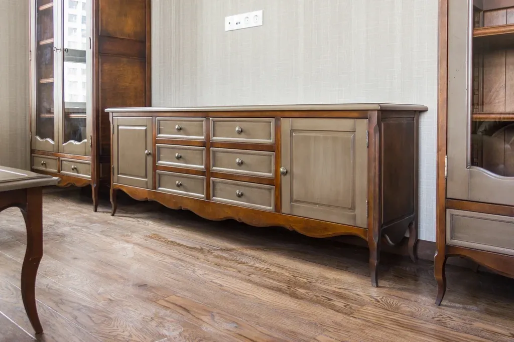 Тумба под ТВ с 6 ящиками и 2 боковыми дверьми.