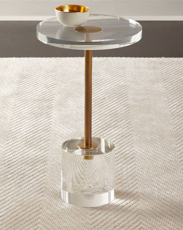 Приставной столик “Юта” – изысканный предмет интерьера в стиле ар-деко, сочетающий элегантность и функциональность. Модель оснащена прочным подстольем и круглой столешницей из прочного акрила, создающие эффект лёгкости. Акценты в цвете латунь придают столу роскошный вид и делают его универсальным решением как для гостиной, так и для зоны отдыха. Этот стильный столик идеально подходит для размещения напитков, книг или декоративных элементов, гармонично дополняя интерьер.